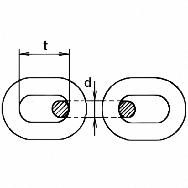 | Калібр ланцюга (d) | Крок (t) | Рабоче навантаження | Пробне навантаження | Руйнівне навантаження | Маса за 1м |
