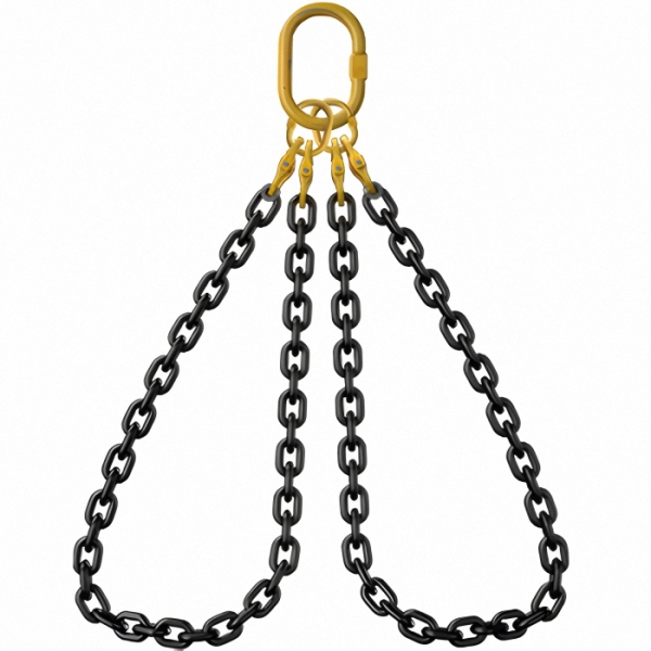 Для виготовлення використовується ланцюг класу міцності G80 з термообробкою. Усі з’єднання виконуються на заводі відповідно до стандартів, що гарантує надійність і безпеку при навантаженнях. Можлива комплектація різними типами гачків.