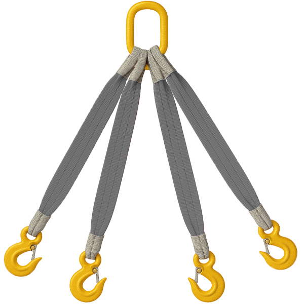 Для вантажів із чотирма точками кріплення: Оптимальні для переміщення громіздких, нестабільних або важких об’єктів, де потрібна фіксація з чотирьох сторін. Забезпечують максимальну стійкість вантажу під час підйому та мінімізують його зміщення або деформацію.